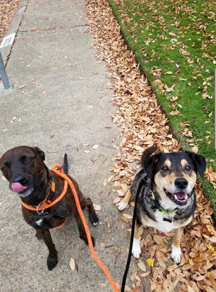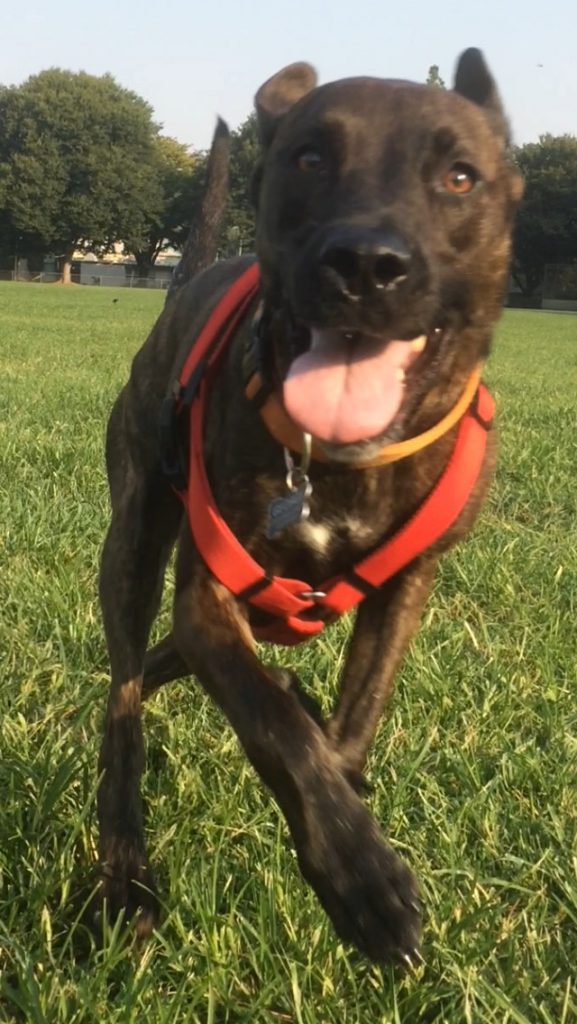 Here is what their parents had to say about these cuties! “Elijah is a 11 ½ years young Catahoula Basenji mix living the celebrity life. He is mellow, exudes happiest, and is always down for a good ‘joy roll’! His favorite food is watermelon. Georgie is a 5 year old Plott Hound mix who dreams of joining the pro-frisbee circuit. He is an explosion of joy and silliness, while at the same time extremely intuitive to energy and rushes to your side whenever you feel off balance. His favorite food is whatever Eli is having. If you see them out walking around, please stop and say hello, they LOVE spreading smiles throughout the world.”